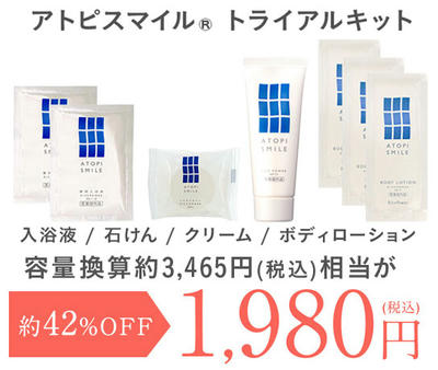 アトピスマイル トライアルキットは、トラブル肌をトータルケアできるお得なトライアルキットです。